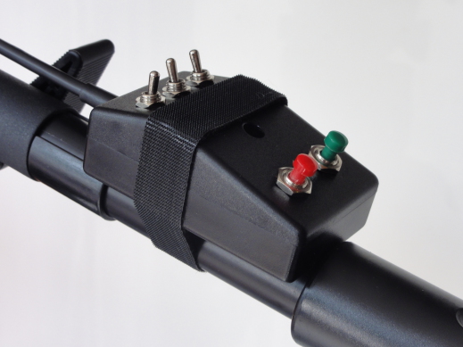 Three toggle switches and two momentary push buttons can be assigned to functions such as: