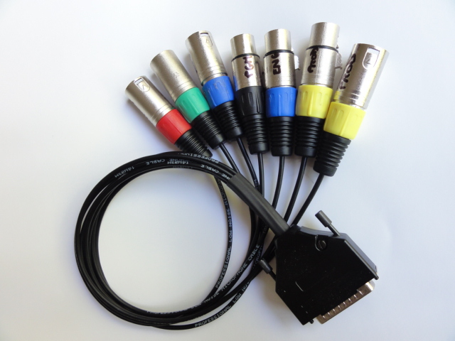 Intercom breakout cable. Sony CCU 25 pin 'D' breakout cable to Talkback, Tally, and program audio XLR connectors.
